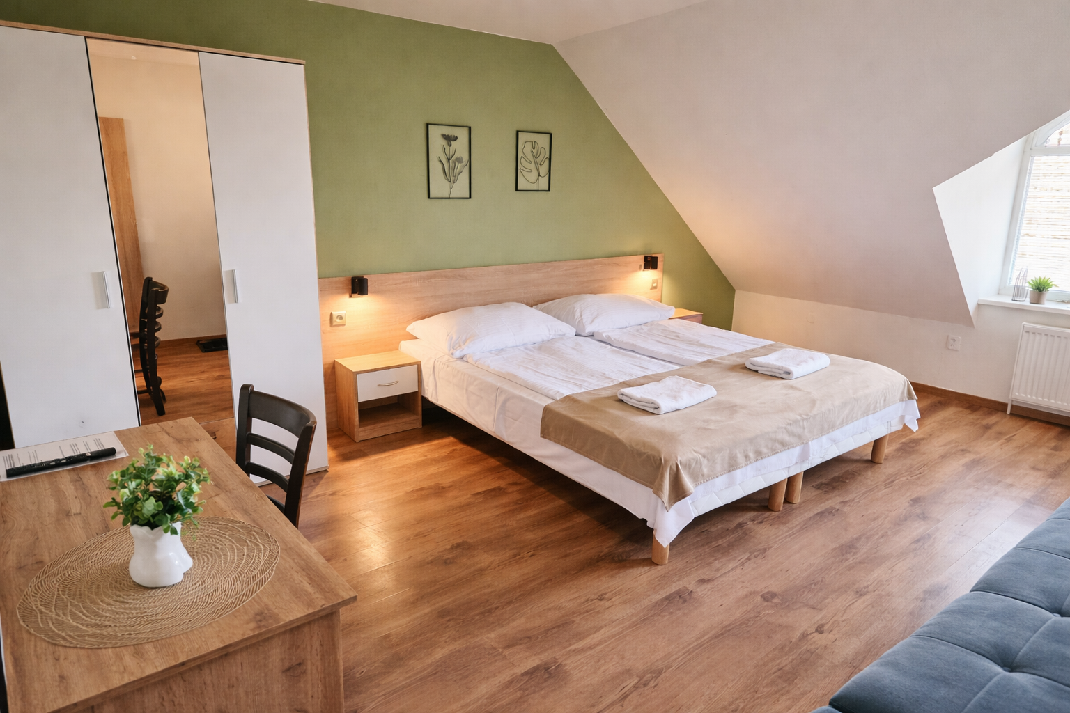 K dispozícii sú štyri plne zariadené apartmány a štyri dvojlôžkové izby. V okolí nájdete množstvo možností na turistiku a šport – pešie trasy, cyklotrasy, Laskomerské singletraily či Cyklobus. V zimnom období si môžete zalyžovať v blízkych strediskách Králiky, Šachtičky alebo Donovaly. Moderné apartmány s plne vybavenou kuchyňou sú vhodné na krátke aj dlhšie pobyty – pre turistov, rodiny, študentov aj pracovné cesty. Hostia majú k dispozícii práčku, sušiak na bielizeň, žehliace potreby a parkovanie priamo pri objekte.